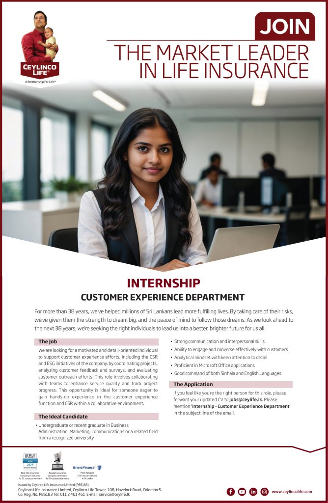 Ceylinco Life Insurance Limited, Ceylinco Life Tower, 106 Havelock Road, Colombo 5. Tel: (011) 2461461