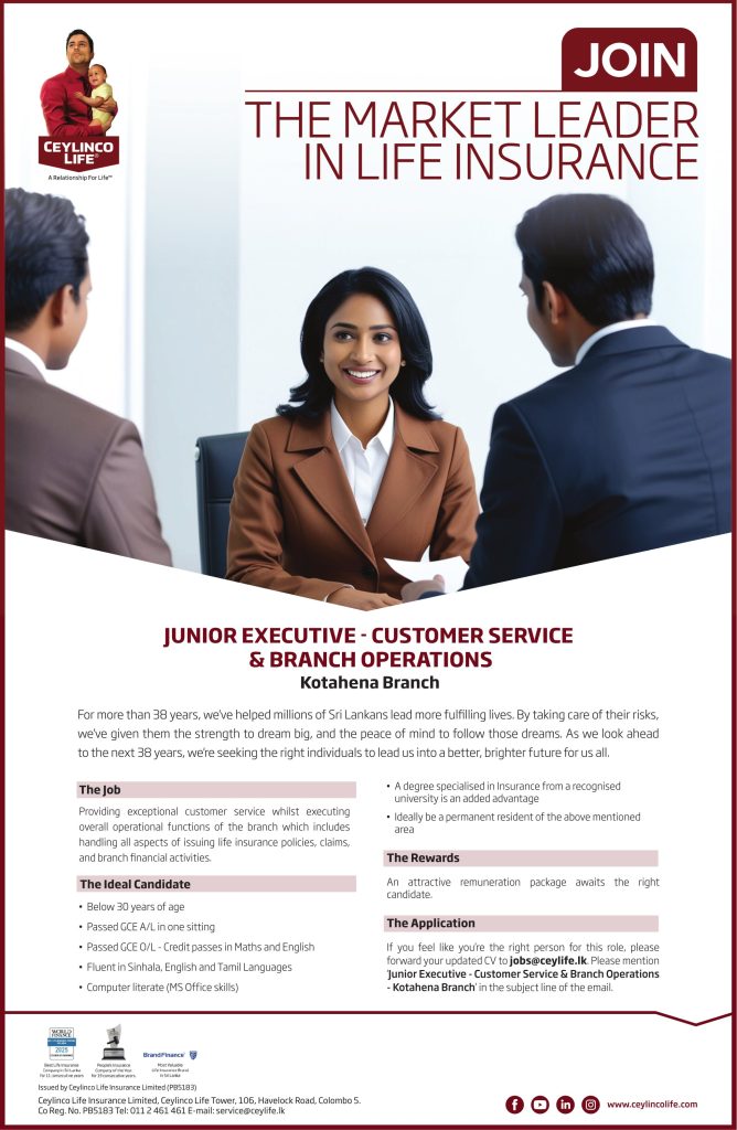 Junior Executive – Customer Service & Branch Operations (Kotahena Branch)